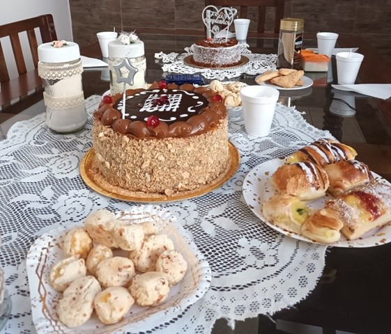 Disfrutamos de un delicioso desayuno y compartimos una rica torta para hacer de este día algo especial.